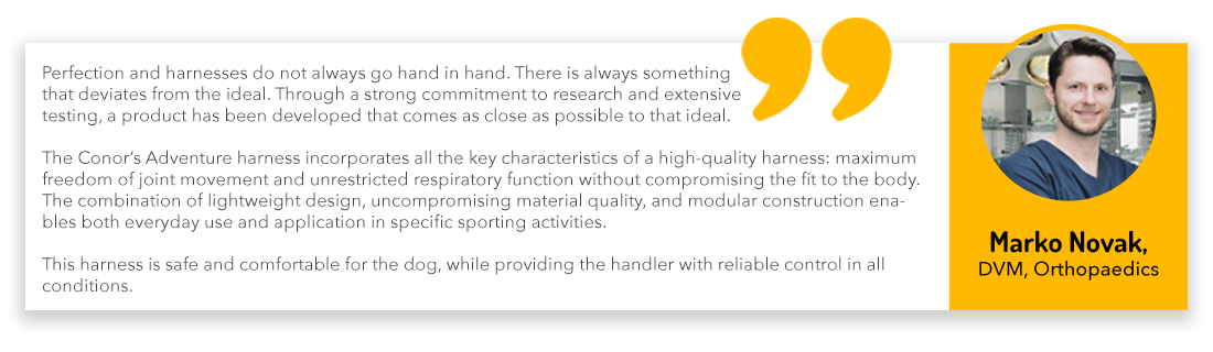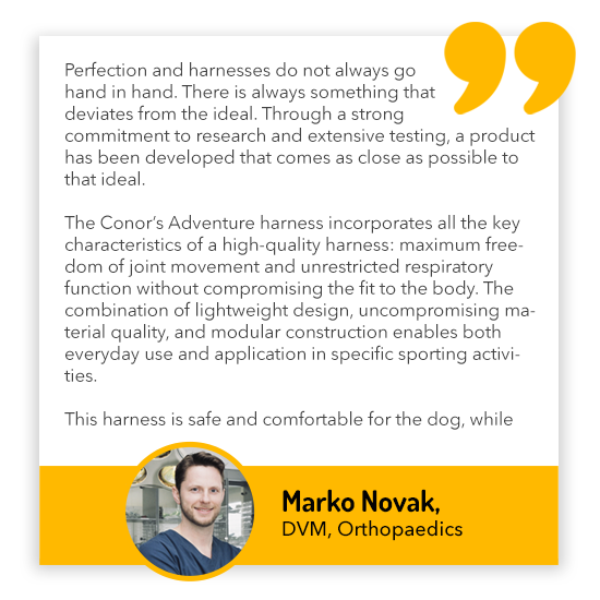 It was developed in collaboration with one of the best orthopedic specialists in Slovenia – veterinarian Dr. Marko Novak, with the goal of ensuring minimal restriction while maintaining high comfort for the dog and ease of use for the handler.